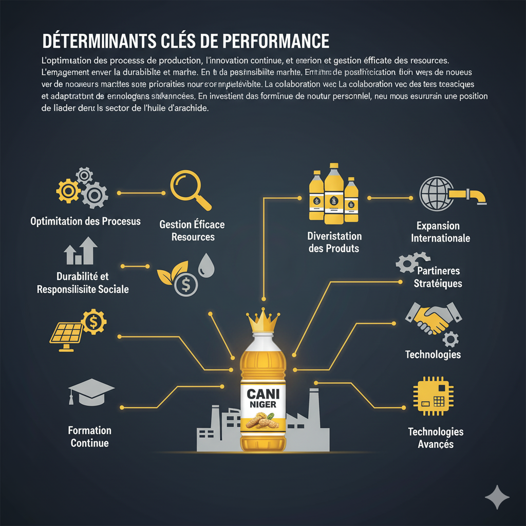 Les déterminants clés de la performance de La Raffinerie d’Huile d’arachide de CANI NIGER incluent l’optimisation des processus de production, l’innovation continue, et la gestion efficace des ressources. L’engagement envers la durabilité et la responsabilité sociale renforce notre position sur le marché. En termes de positionnement stratégique, la diversification des produits et l’expansion vers de nouveaux marchés internationaux sont prioritaires pour accroître notre compétitivité.